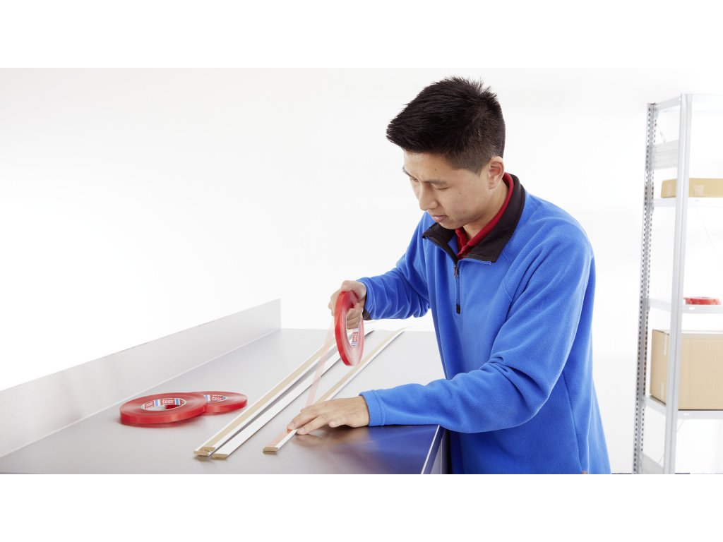 Oboustranná páska tesa® 51966 s vysokou přilnavostí a odolností proti chemikáliím. Ideální pro venkovní aplikace a montáže s teplotní odolností až 80 °C.